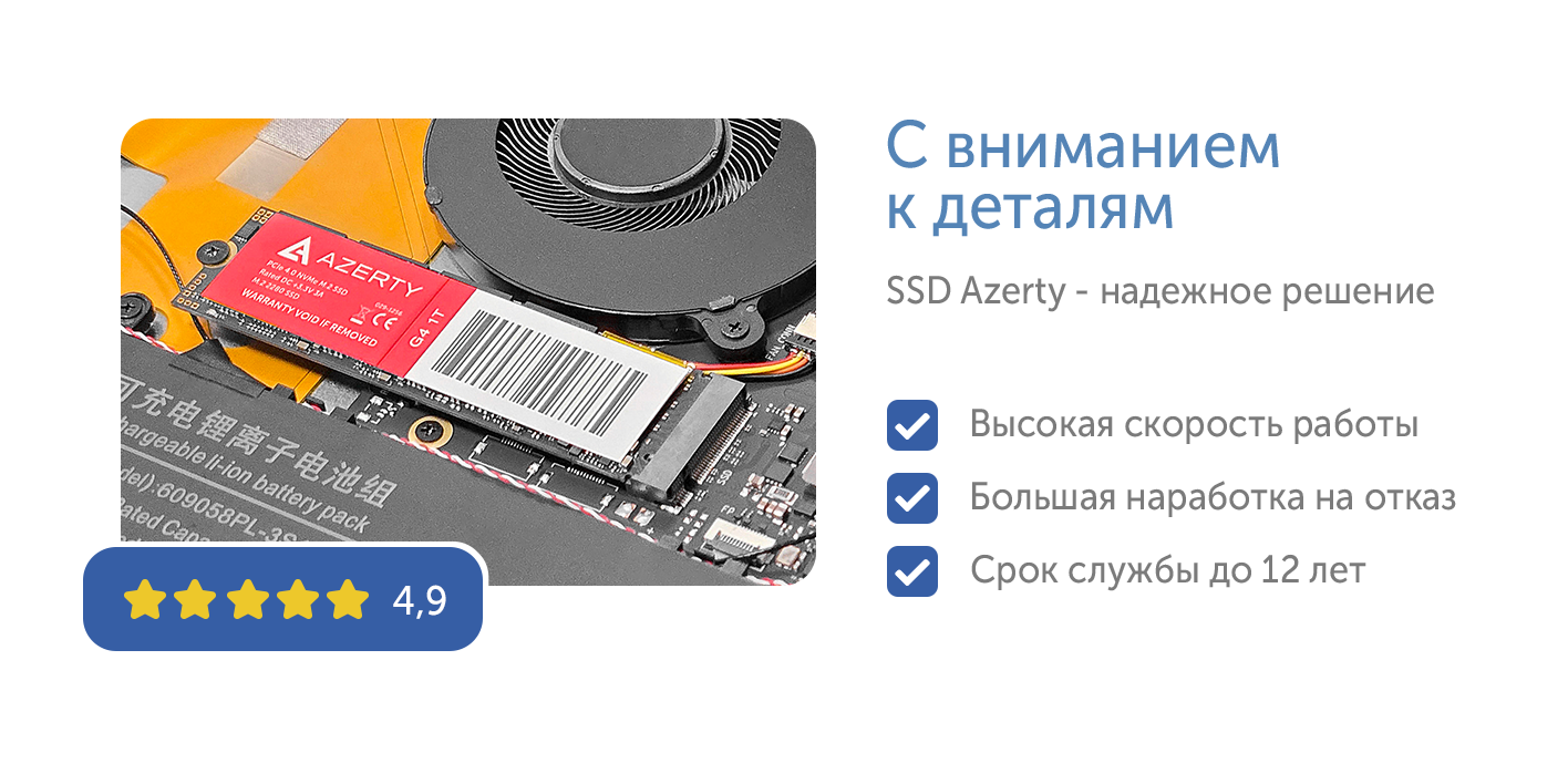 даже при высокой нагрузке множеством задач. Твердотельный накопитель объемом